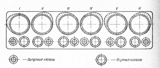 Более интенсивный износ стенок цилиндров, расположенных против клапанов, дает основание предполагать, что характер радиального износа в той или иной степени определяется направлением потока горючей смеси, поступающей в цилиндры, корродированием рабочей поверхности и смывом смазки со стенок неиспа-рившейся частью топлива, содержащейся в горючей смеси.