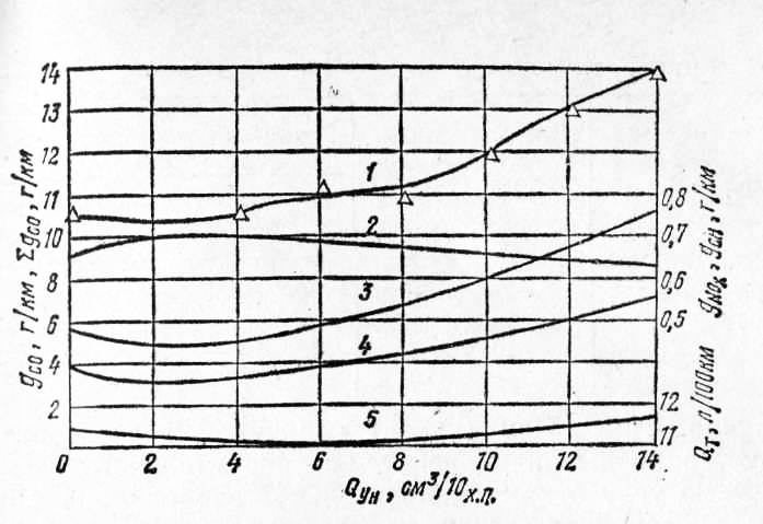 Уменьшение производительности ускорительного насоса карбюратора К-88АМ с 20 до 10 см3 снижает содержание СО в 2 раза и на 1,2…1,5% уменьшает расход топлива за период разгона автомобиля.