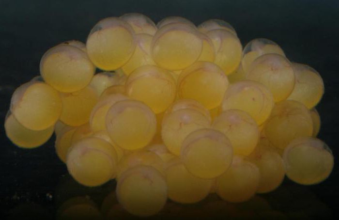 Икра крупная и липкая, поэтому она мгновенно приклеивается к стенкам и дну гнезда.