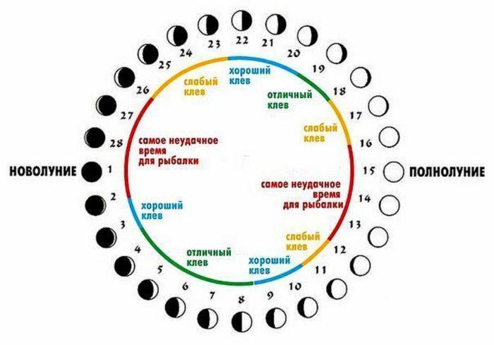 [info-box type=»info»] На интенсивность клева оказывает воздействие погода и фазы луны для рыбалки. Календарь составляется на основе такого воздействия.[/info-box]