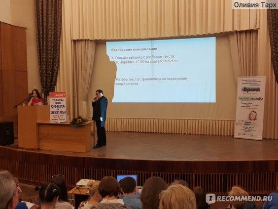 Атмосфера добровольной общественной акции . «Меня впервые пригласили участвовать, и, если честно, я думал, что это какое-то очередное событие “для галочки”, - говорит актер и диктатор Александр Олешко. - Но когда я пришел на площадку, увидел, какие собираются красивые, одухотворенные люди, что для них это действительно праздник и они это делают исключительно из любви к русскому языку… Все в стране сейчас озабочены падением уровня образования, но после всего увиденного 8 апреля я вам авторитетно заявляю: у нас все хорошо!».