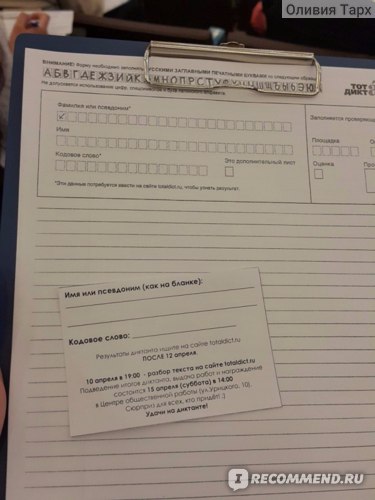 Тотальный диктант - ежегодная образовательная акция в форме добровольного диктанта для всех желающих.
