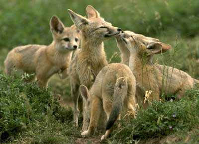 Корсаки (Vulpes corsac) Более социальны, чем другие лисы и нередко группы этих животных живут вместе в "корсачьих городках".