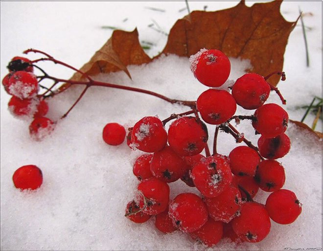 Если на рябине листья завянут и останутся на зиму, то будут сильные морозы. Кстати, эта примета справедлива не только для рябины, но и для других деревьев.