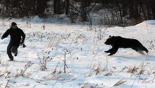При возникновении такой, мягко говоря, неприятной ситуации главное не обратиться в бегство — побежавший человек практически гарантированно станет покойником. К тому же убежать от медведя невозможно — в рывке он может развить скорость до 50-70 км/ч. Типичными последствиями удачной атаки медведя могут быть оскальпированный череп, сломанная шея, разодранный живот или прокушенные конечности. Чтобы не доводить дело до столь печального конца, нужно стрелять.