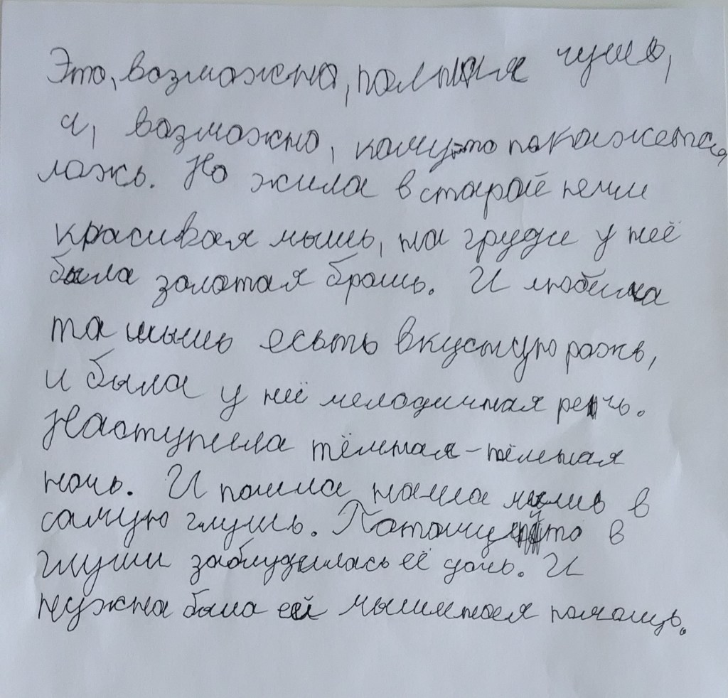 Наступила тёмная-тёмная ночь. И пошла наша мышь в самую глушь, потому что в глуши заблудилась её дочь, и нужна ей была мышиная помощь.