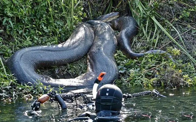 Случаи встречи человека и анаконды, описанные в книгах, относят к разряду «легенд». Поскольку достоверных фактов и документов, подтверждающих существование змеи больше 10 метров, нет. Распространенная история, детально описанная в книгах, касается 1944 года, когда в джунглях Колумбии геологами была поймана анаконда размером 11 метров и 43 сантиметра. До настоящего момента рептилий с указанными размерами обнаружить не удалось. Специальная награда в $50 000 (установлена в Америке), ждет храбреца, который поймает и доставит анаконду размером больше 9 метров и 12 сантиметров.