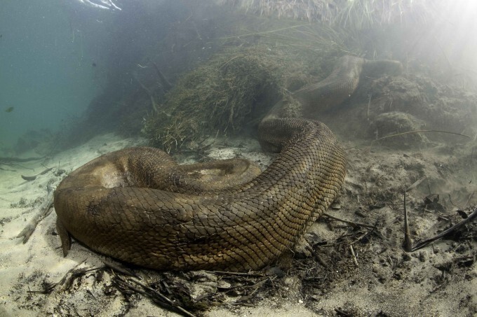 Фотографу удалось сделать потрясающие фотографии гигантской анаконды прямо в ее естественной среде обитания, под водой.