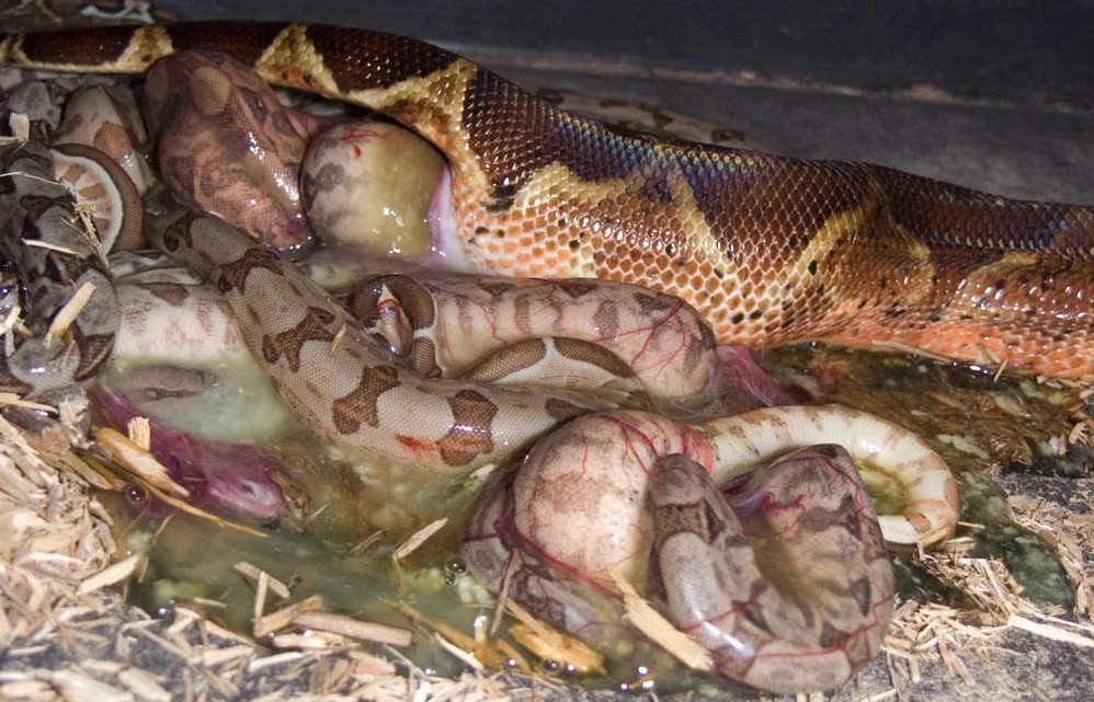 Самым главным отличием анаконды от удавов — это то, что она является живородящей змеей!