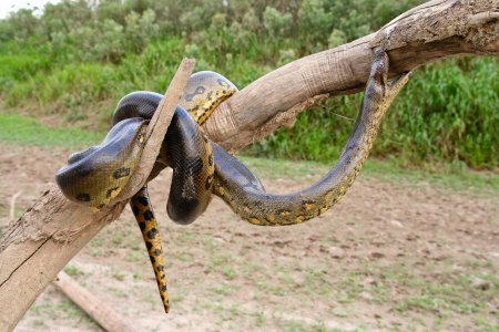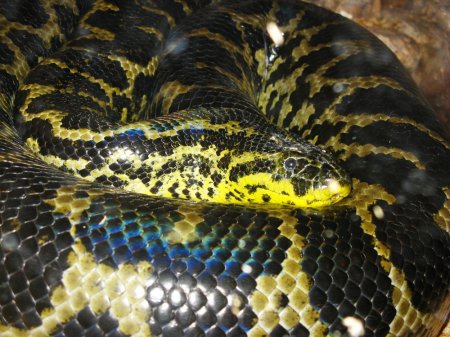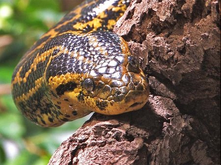 Зеленая гигантская анаконда обитает в Южной Америке. Такое название змея получила за свои размеры, колеблющиеся от 5 до 9 метров. Самая крупная анаконда имела по достоверным источникам 11,43 метров длины.