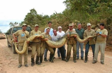 Самая длинная из пойманных анаконд достигала 11,43 метра. Особь