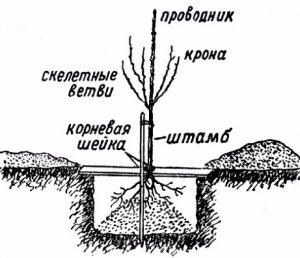 Если почва плотная, глинистая, дно нужно хорошо взрыхлить лопатой и устроить дренаж из мелких камней или щебня слоем 10 – 20 см. Посадочную смесь готовят, добавляя к верхнему плодородному слою, вынутому из ямы, дерновую землю, компост и песок (эти компоненты берутся в соотношении 3:2:2).