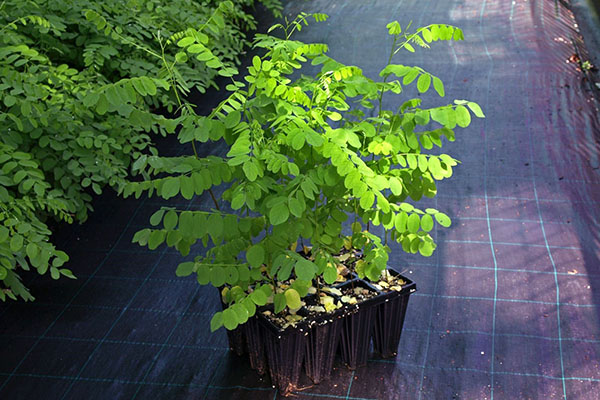 При покупке саженцев белой акации убедитесь, что данный саженец вырос именно в том контейнере, в котором его продают.