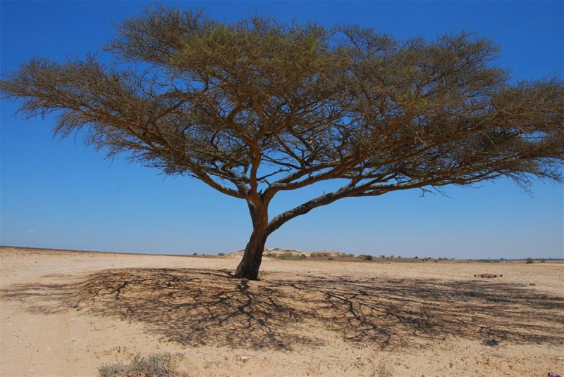 На родине дерево белой акации может достигать 30 метровой высоты и около полутора метров в диаметре ствола. Раскидистая крона при этом, может быть шире дерева еще в два раза. «Зонтиковая» форма кроны выдает, что растение является саванным, приспособленным к большому количеству солнца и сухому ветру, дующего с боку. При густой посадке акации такая крона превращается в однобокую, поскольку одной из ее частей не хватает света. И, естественно, белая акация весьма устойчива к засухе, иначе в условиях саванны ей было бы не выжить.