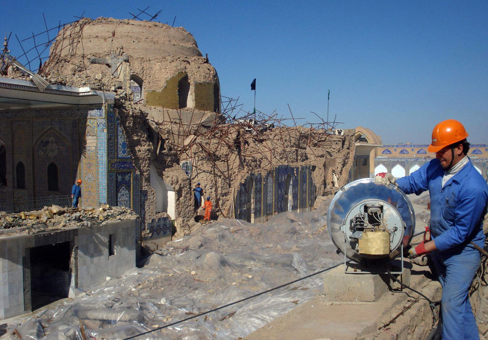 Иракские строители начали работы по реконструкции и восстановлению разрушенной исторической святыни шиитского имама Аль-Аскари в северной части города Самрра, 5 февраля 2008 года. Начались работы по восстановлению почитаемого храма, который был сильно поврежден в результате взрыва бомбы. Взрыв бомбы, по словам корреспондента AFP, развязал волну насилия на религиозной почве по всему Ираку почти два года до этого. (Dia Хамида / AFP / Getty Images)