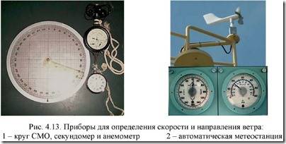 Для измерения скорости и направления истинного ветра служат анемометр, секундомер и круг СМО (рис. 4.13).