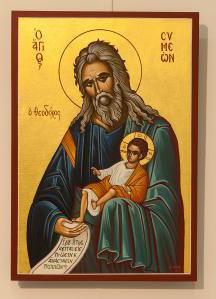Теперь, когда обряд был совершен и Святое Семейство собиралось выйти из Храма, тут к ним приблизился старец по имени Симеон. Это был великий праведник. Взяв Богомладенца в руки, он с огромной радостью воскликнул: «Ныне отпускаешь раба Твоего, Владыко, по слову Твоему, с миром, ибо видели очи мои спасение Твое…»