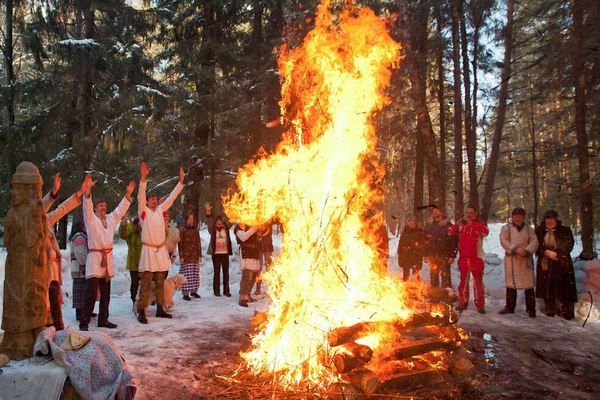 У славян в эту неделю водили хороводы, пели песни, пекли оладьи, которые являлись символом Солнца. Другое название славянского праздника – Комоедица. Первый блин относили «комам», то есть медведям. Этих животных очень почитали в Древней Руси.
