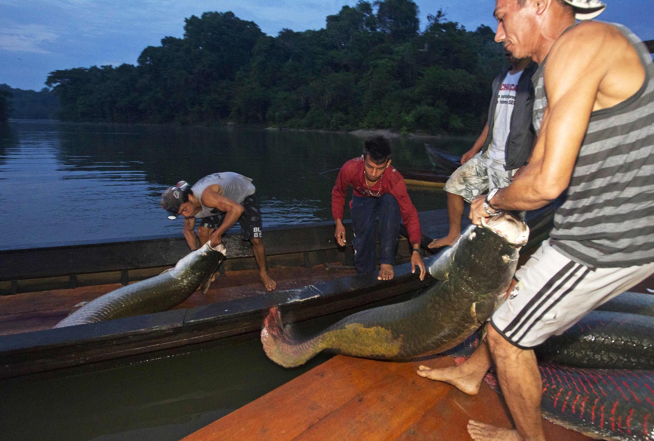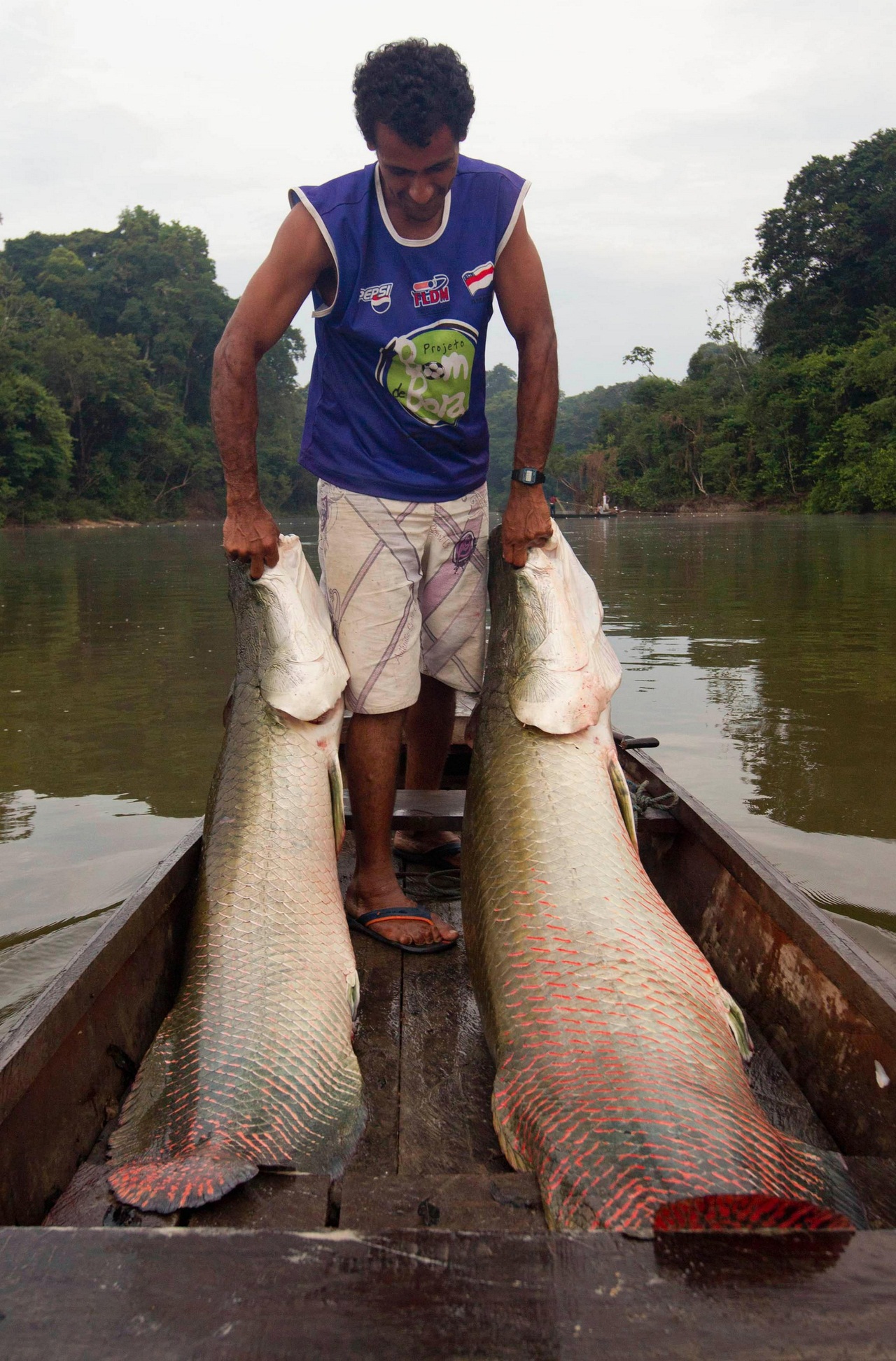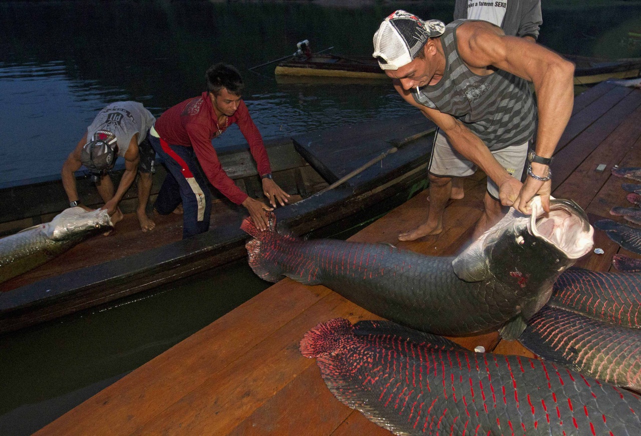 Арапайма согласно мировому рекорду IGFA является крупнейшей рыбой обитающей в водоемах. Арапайма, также известная как «pirarucu» или «paiche», - это гигантские плотоядные рыбы, живущие в Амазонке и ближайших озерах. Будучи усеянными бронированными чешуйками, они не парятся из-за что живут в водах насыщенных пираньями, поскольку они являются довольно проворными хищниками, которые поедают рыбу и случайно проплывающую птицу. Как правило, арапаймы находятся возле поверхности, потому что им необходимо дышать обычным воздухом, а также получать кислород из воды при помощи своих жабр. Они делают характерный кашель, когда появляются на поверхности. Близость арапаймы к поверхности воды делает ее уязвимой для людей-охотников, которые могут легко атаковать гарпунами. Некоторые коренные общины потребляют мясо и язык арапаймы, превращая их в ювелирные изделия и другие предметы.