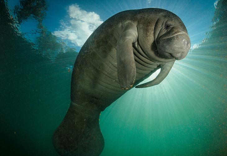 У них практически отсутствует подкожный жир, а потому они могут жить только в теплой среде при температуре не менее пятнадцати градусов. Питаются ламантины только водорослями, поедая за день до 18 килограмм.