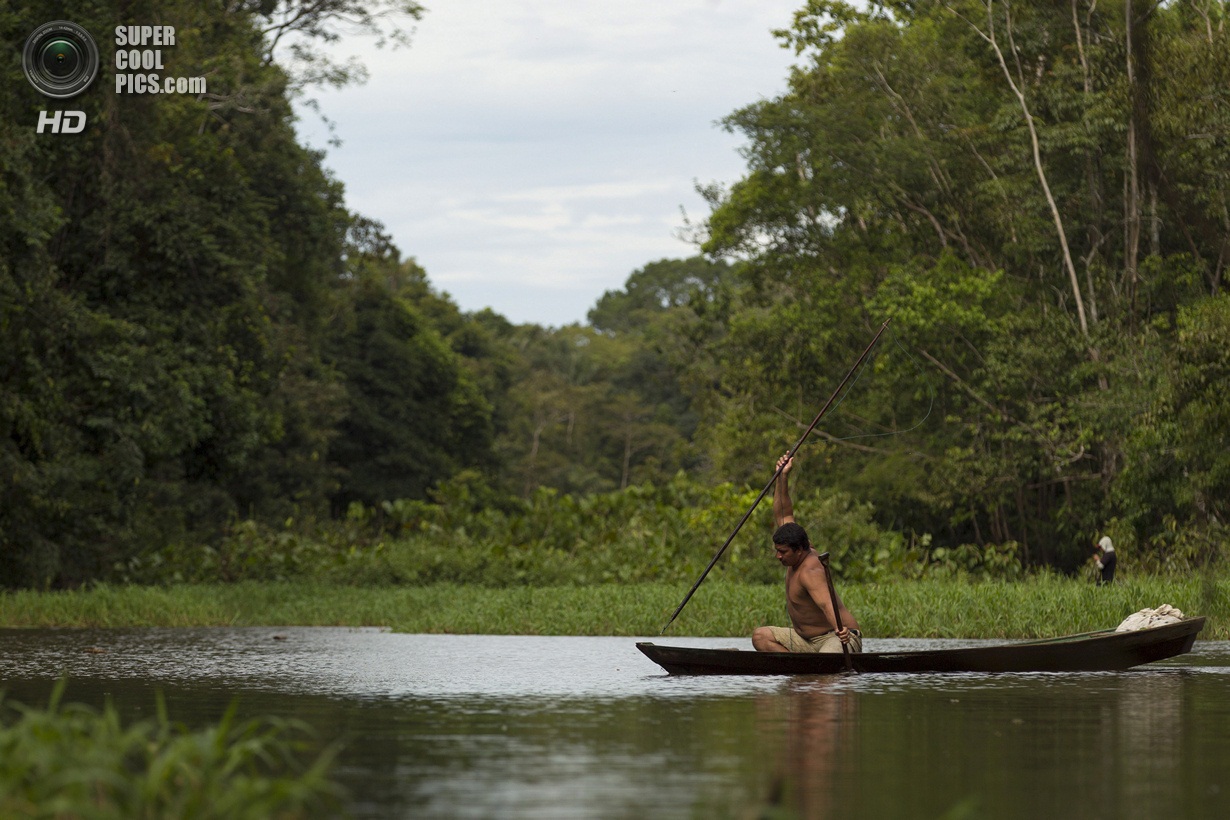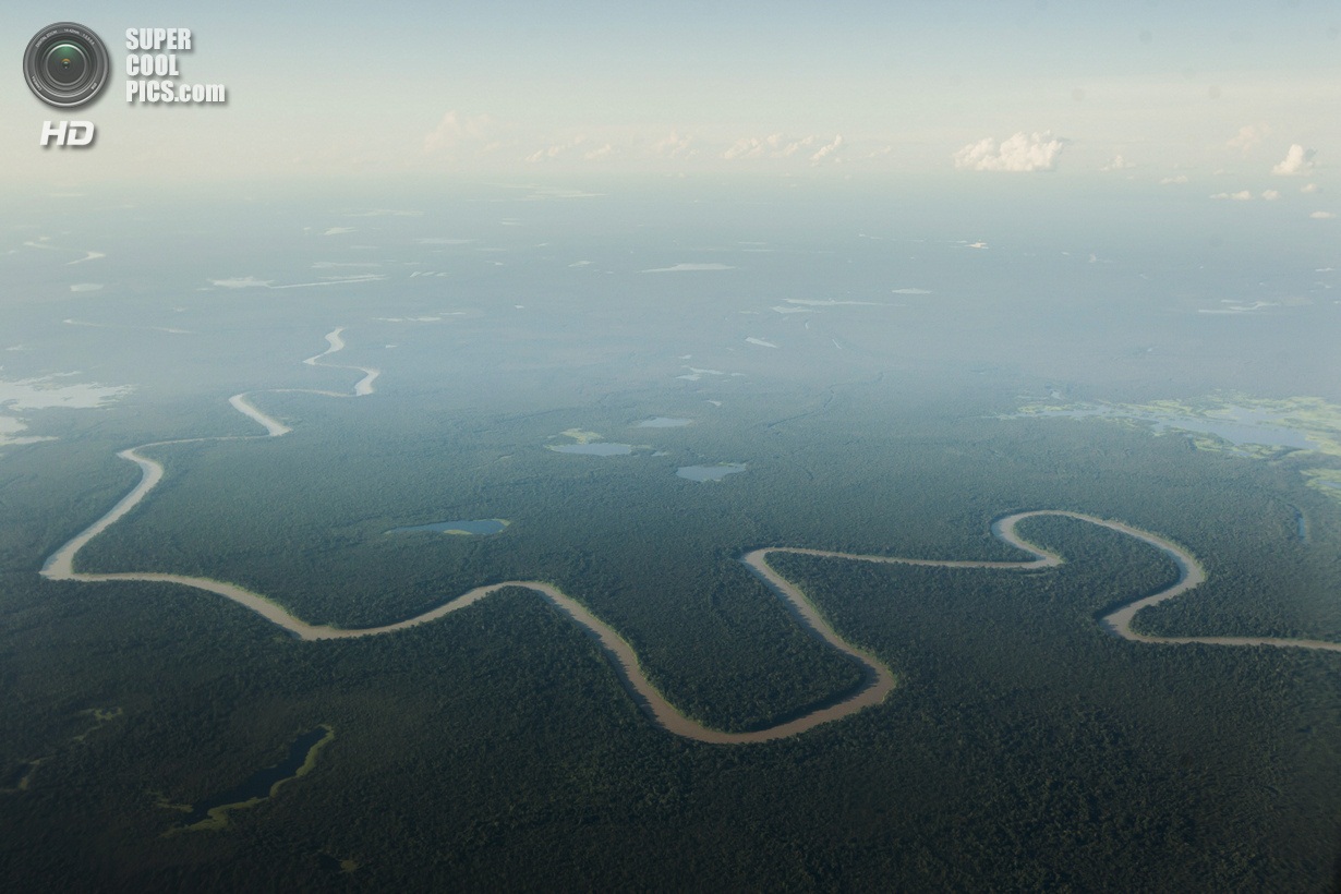 На фотографии: вид на амазонскую реку из иллюминатора самолета-амфибии «Сессна-208», который доставил из Манауса фотографа Бруно Келли в деревушку Медио Журуа (Medio Jurua), муниципалитет Карауари, штат Амазонас, Бразилия, 3 сентября 2012 года.