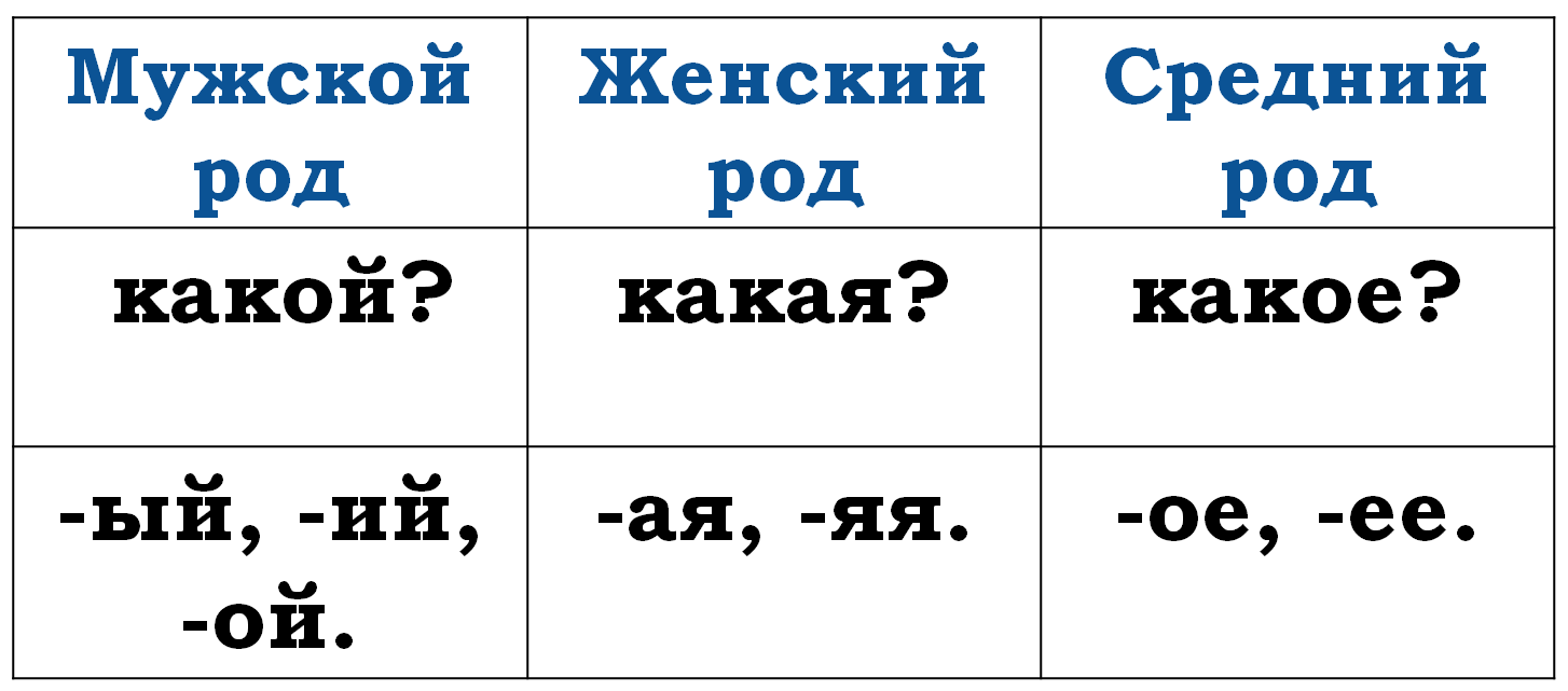 -Как изменяются имена прилагательные в единственном числе? (По родам).