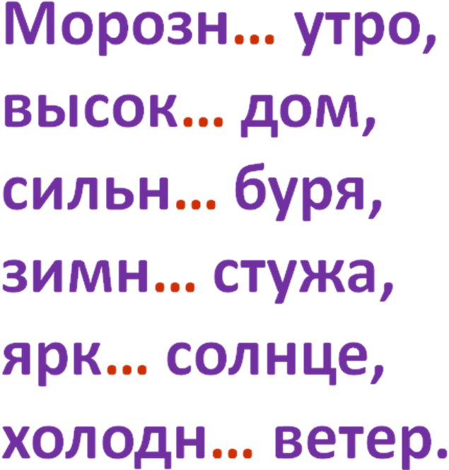 1) Поздние огурчики, желтые одуванчики, русский язык, радостное чувство, февральские метели, прелестная ромашка, зимняя погода.