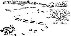 Заяц после подъема в большинстве случаев обязательно проходит через свою лежку или около нее, т. е. он ходит кругами (рис. 7).