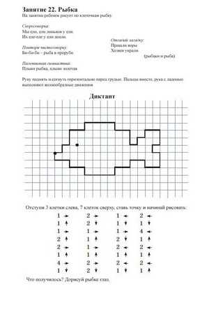 Графические диктанты дополнены загадками, скороговорками, чистоговорками и пальчиковой гимнастикой. В процессе занятия ребенок отрабатывает правильную, чёткую и грамотную речь, развивает мелкую моторику рук, учится выделять отличительные особенности предметов, пополняет свой словарный запас.