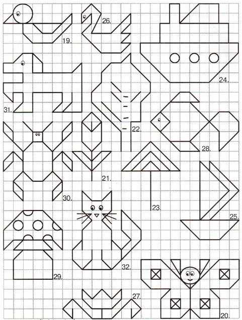 Надеюсь вашим деткам понравится выполнять графические диктанты по клеточкам. На картинках (они кликабельны), я выбрала самые интересные графические диктанты для малышей.