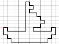 следует читать: 1 клетка вправо, 3 клетки вверх, 2 клетки влево, 4 клетки вниз, 1 клетка вправо.