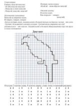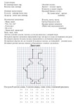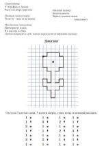 Как правило, сделать такое задание под диктовку просто невозможно. Необходимо распечатывать образец выполнения в цветном варианте и копировать его на своем листе , самостоятельно отсчитывая то количество клеток, которое необходимо закрасить определенным цветом.