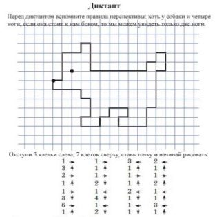 Рисование по клеточкам для первоклашек должны быть не слишком сложными. Их можно проводить несколькими способами: