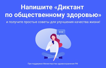 Министерство здравоохранения Российской Федерации при поддержке медицинского сайта MedAboutMe запускает ежегодную образовательную акцию «Диктант по общественному здоровью 2021». Поучаствовать в нем может каждый россиянин уже в первый месяц зимы предстоящего года с 6 до 12 декабря 2021 года. Акция будет проведена в дистанционном режиме онлайн через официальный сайт publichealth.ru. Она направлена на повышение знаний российского населения о своем здоровье и способах достижения долголетия. Кроме того, акция является бесплатной и доступна всем, у кого есть возможность выхода в Интернет и несколько свободных минут. Организаторы Диктанта по общественному здоровью уверяют, что участие в нем – важный вклад, в первую очередь, в себя самого. Ведь умение беречь свое здоровье – один из самых полезных навыков современного человека.