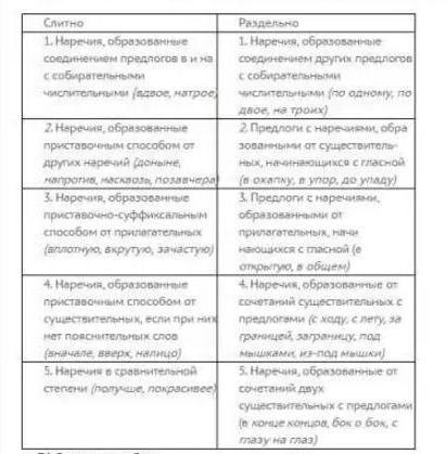 Используя таблицу (у каждого на парте печатный вариант), объясните слитное и раздельное написание приставок в наречиях, образованных от существительных и количественных числительных.