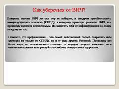 "ВИЧ-инфекция - длительное и тяжелое заболевание, характеризующееся поражением клеток иммунной системы человека, против которого пока еще не разработаны эффективные методы лечения и средства специфической профилактики (вакцины)".
