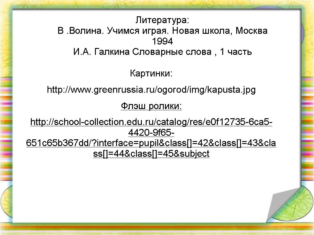– Это новое словарное слово. Запишите его в тетрадь, подберите слова-родственники и запишите. (Запись в тетради: Капуста, капустный лист, капустница.)