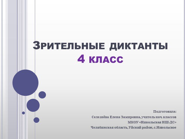Подготовила: Селезнёва Елена Замировна, учитель нач. классов МКОУ «Никольская НШ-ДС» Челябинская область, Уйский район, с.Никольское