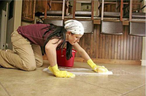 Самым неприхотливым напольным покрытием считается плитка. Она отлично отмывается обычной водой. Для этого отделочного материала характерен скользящий эффект, поэтому его рекомендуется обрабатывать составами, которые обладают антискользящими свойствами. Подобные моющие средства образуют невидимую пленку, которая препятствует загрязнению поверхности и защищает ее от повреждений.