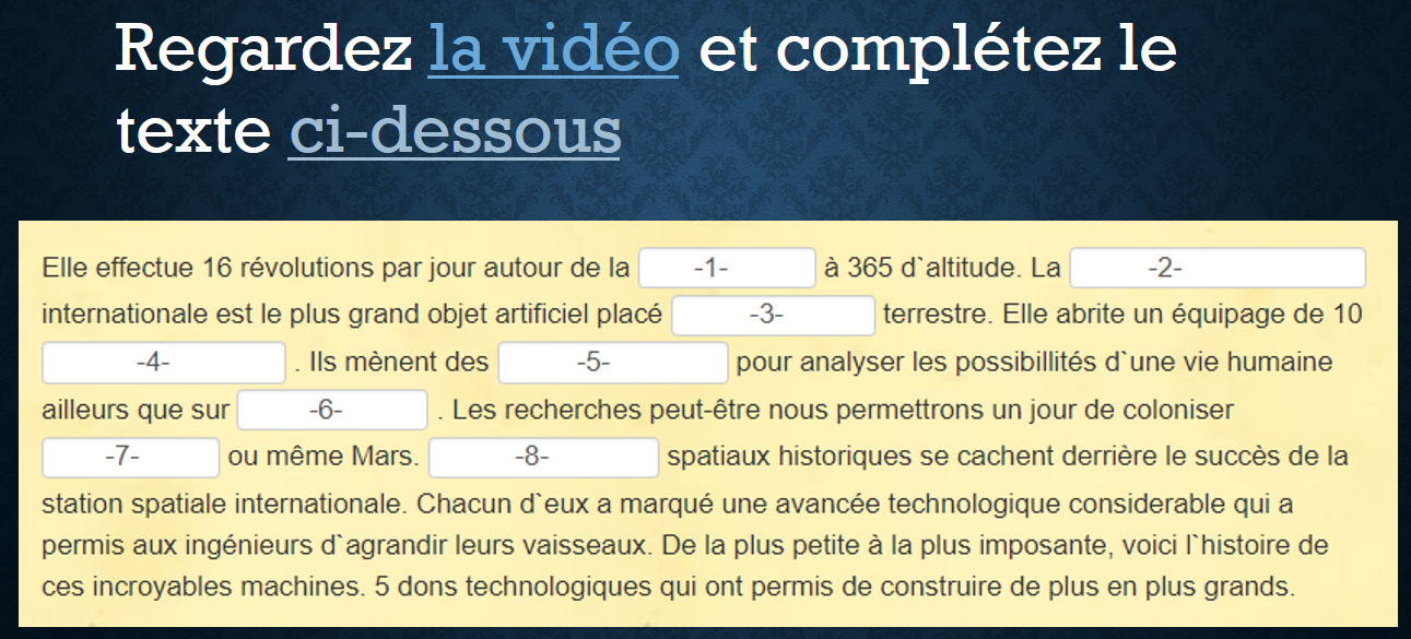 «Les Français dans l’espace», вопросы после текста.