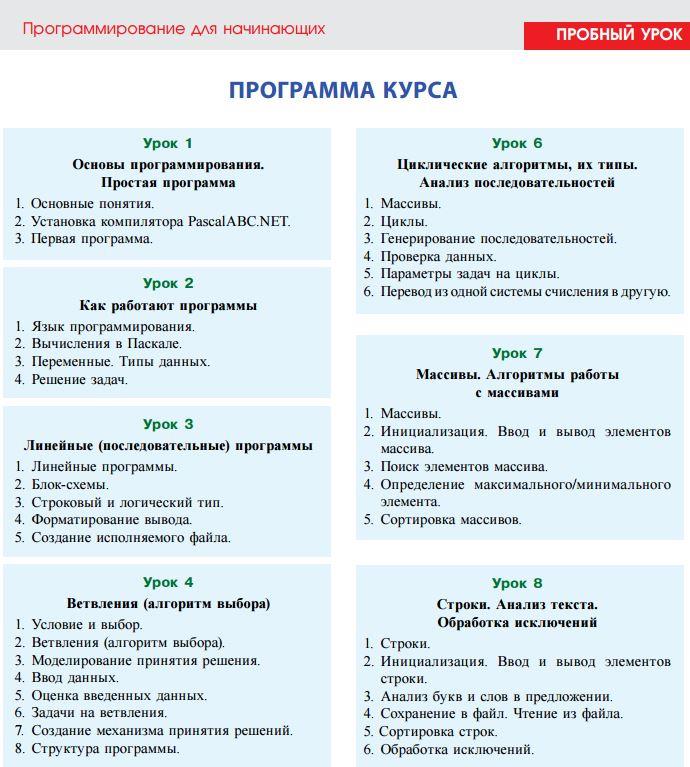 Для начала ознакомьтесь с подробной информацией, которая указана на сайте – просто нажмите на название курса. Если вы не можете определиться с направлением, скачайте пробный урок. Заполните заявку на сайте и выберите вариант урока в печатном или электронном виде.