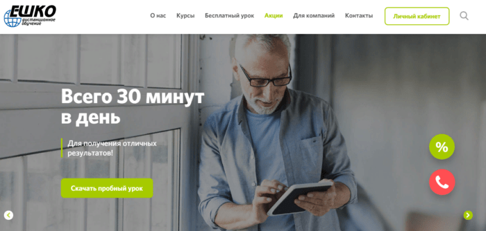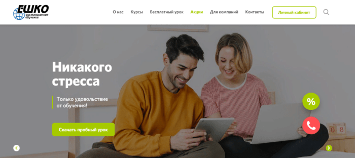 ЕШКО – это школа удаленного обучения, в которой каждый желающий может получить дополнительное образование. Студентам предлагается более 80-ти курсов из разных категорий (например, иностранные языки, финансы и учет, управление бизнесом, дизайн, психология и педагогика, компьютерные технологии). Записаться на курс можно на официальном сайте. Обучение курируется личным преподавателем, при необходимости можно сделать перерыв. Студенты имеют возможность оплачивать обучение помесячно или оплатить сразу весь курс (в этом случае предоставляется скидка). Каждому студенту предоставляется личный кабинет, который помогает сделать обучение максимально удобным и эффективным.