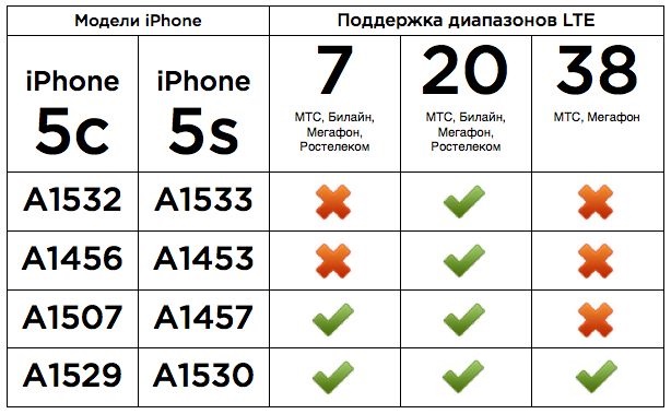 Для LTE в России используется стандарт band 20 , в то время как во многих азиатских моделях он отсутствует. Например, привезённые из китая iPhone могут работать в band 7 (2600 МГц), но не поддерживать LTE 800 МГц (Band 20). К тому же стоит учитывать, что частот в Band 20 у наших операторов сравнительно мало, и сети в этом диапазоне развивают не так активно. Владельцам таких iPhone не стоит жаловаться на низкую скорость и «плохого оператора». С LTE в диапазоне 1800 МГц тоже не всё гладко: ваш любимый роутер LTE в диапазоне 1800 может не работать, и опять будет виноват «плохой оператор».