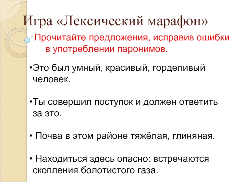 Прочитайте предложения, исправив ошибки в употреблении паронимов.