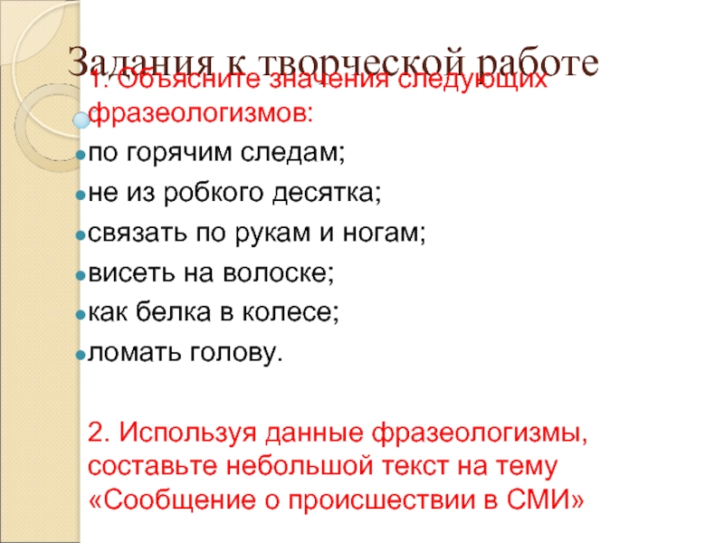 Работа с текстом: прочитайте, выпишите 10 фразеологизмов.