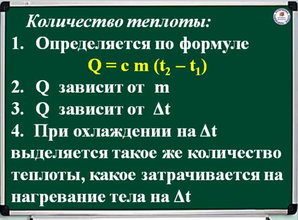 7. Скалярная величина, равная количеству теплоты, которое требуется для изменения температуры тела массой 1 кг на 1 О C, называется удельной теплоемкостью C.