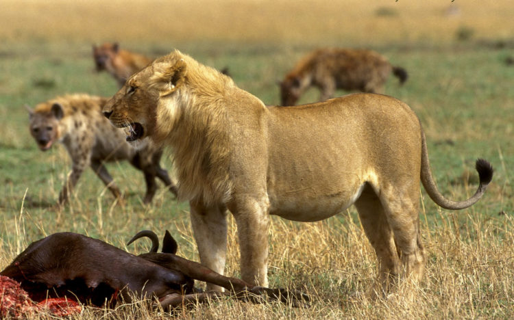 Это интересно! Борьба гиен и львов имеет жесткий характер. Часто случается, что гиены нападают на беззащитных львят или старых особей, за что подвергаются ответному нападению.