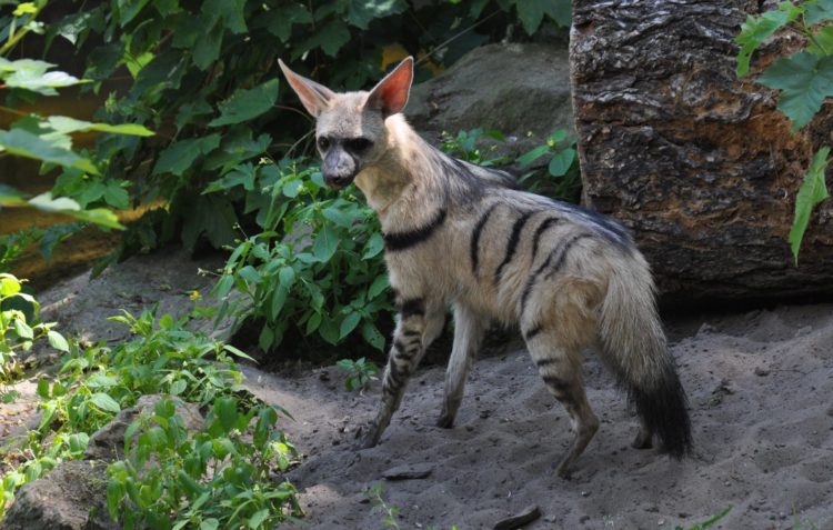 Земляной волк ( Proteles cristatus ) питается исключительно термитами. Регулярно совершая обходы своей территории, он слизывает насекомых с земли липким языком.
