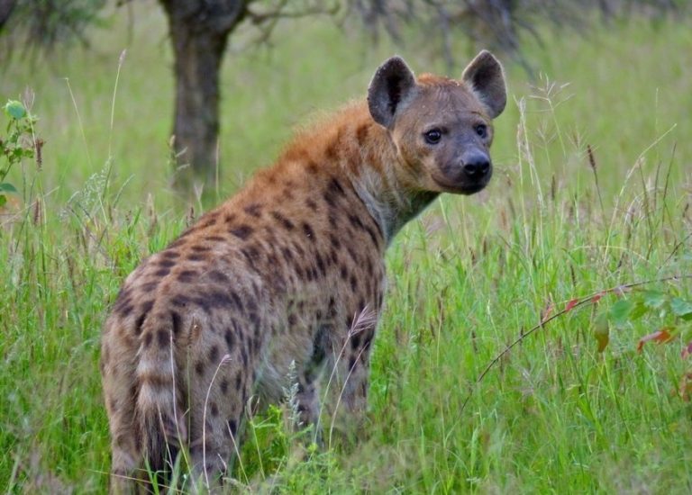 На социальный статус пятнистой гиены указывает положение ее хвоста: если он задран вверх, то это свидетельствует о высоком социальном положении животного, если же он опущен – то статус низкий.