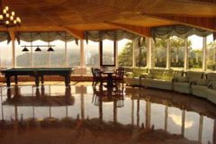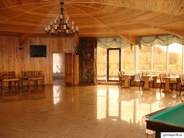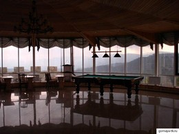 На территории – смотровая площадка, панорама видна и с балконов корпуса, расположенного на краю поляны, и из окон деревянных срубов, стоящих по ее периметру. Мангалы, сауна, кафе, горка с бугельным подъемником, прокат лыж и саней. Зимой – а она на этих высотах может задержаться до середины апреля — для любителей «экстрима» и быстрой езды - прокат снегохода YAMAHA.